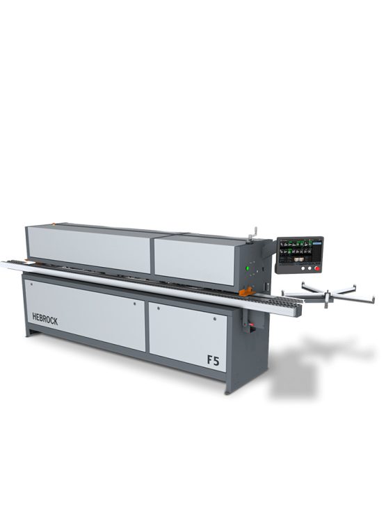 De Hebrock F4 is de consequente doorontwikkeling van de F2. Ten opzichte van de F2 heeft deze machine hoekafrondfrees station en optioneel een radiusschraap station meer. Dus met deze compacte klasse is het werkstuk volledig afgewerkt. Naast de conventionele besturing bieden wij optioneel een full colour touchscreen. Met dit geïnnoveerde besturingssysteem kan men eenvoudig de verschillende bewerkingsprogramma’s selecteren. Verder bieden wij optioneel pneumatische freesverstelling, sproei inrichtingen & wissel lijmunits. Dus geen lange omsteltijden. De F4 is slechts 4,2 meter lang en kan makkelijk worden verplaatst in de werkplaats.