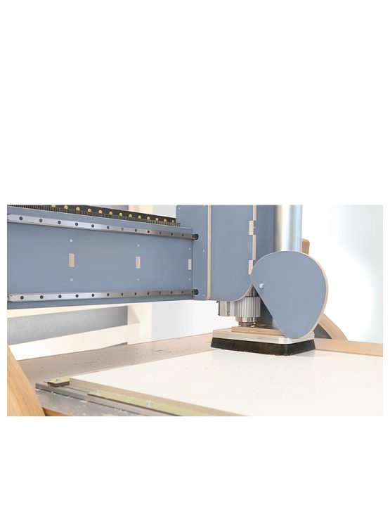 Met behulp van de modernste materialen zoals hoogwaardige multiplex en polymeerbeton, gecombineerd met een innovatieve techniek, hebben we een machineontwerp gemaakt dat qua precisie en dynamiek tot de beste behoort. Het subframe is gevuld met polymeerbeton om de CNC Holzfräse de nodige massa te geven en zorgt voor stabiliteit.