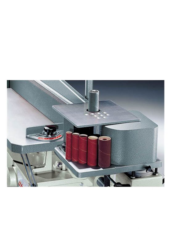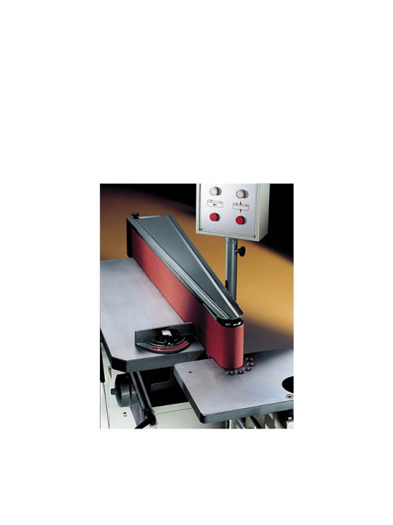 Elektrische verstelling van de schuurband in hoogte t.o.v. de tafel