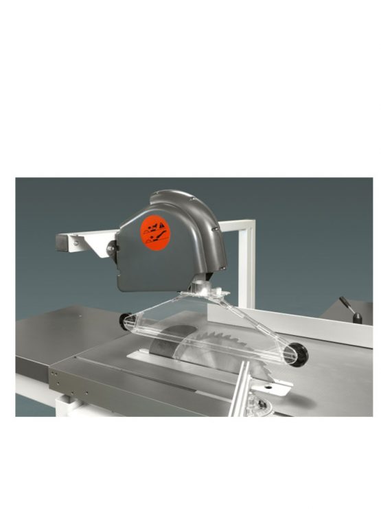 Schuinstelbare gradenboog en brede en smalle zaagkap geschikt voor zaagbladen tot en met 450 mm diameter.