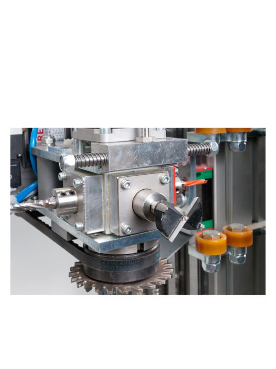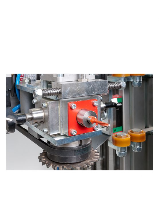 De machine boort rijgaten, potschanieren en verbindingsgaten, zoals bijv mini fix systeem in de onderdelen aan de oppervlakte en aaan twee zijkanten.