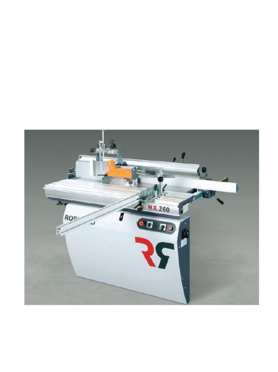 Optie op de HX310 en NX310, zware gietijzeren tafelverlenging met wegklapbare steun voor het aandrijftoestel.