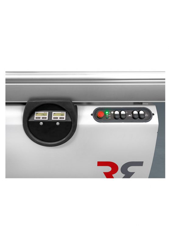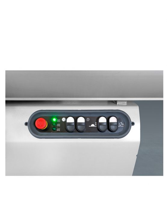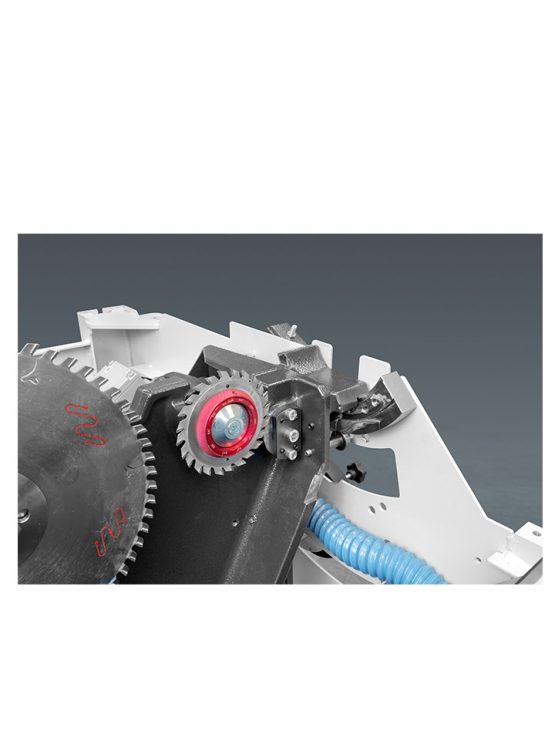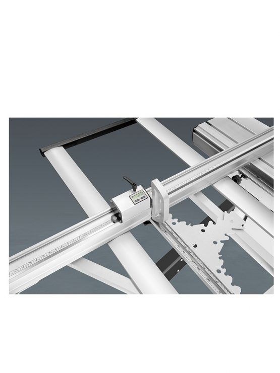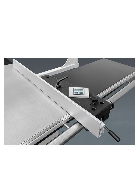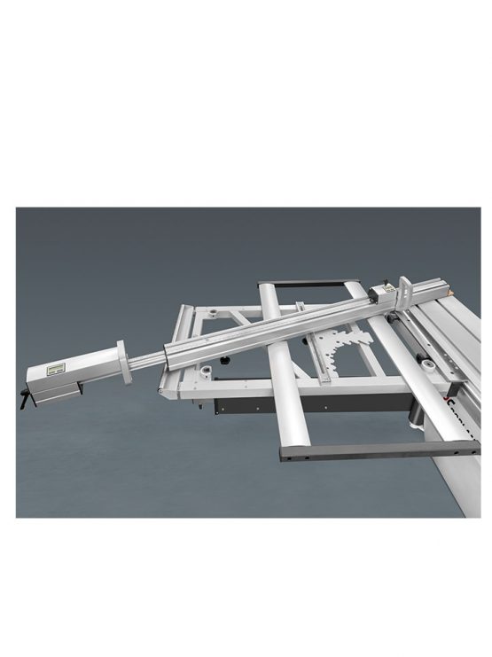 – Comfortpakket op afkorttafel (Uitschuifbaar raam met rol vooraan, uitschuifbaar raam zijdelings, hoekinstelling met aanslagen en lengtecompensatie)