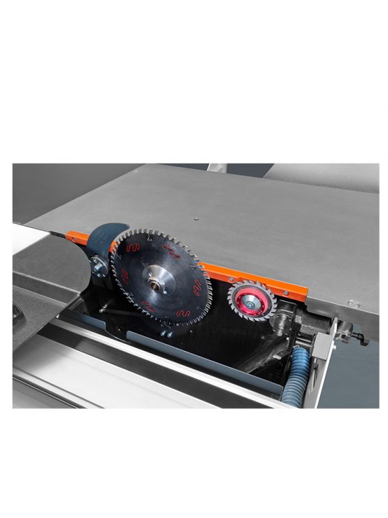 – Electrische hoogteverstelling en schuinstelling van het zaagblad