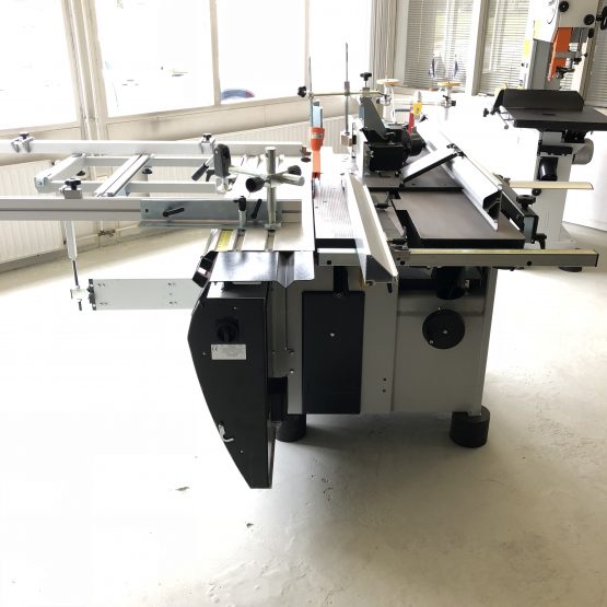 In beide richtingen 2 x 45° schuinstelbare aanslagbalk als standaarduitrusting op de machine.