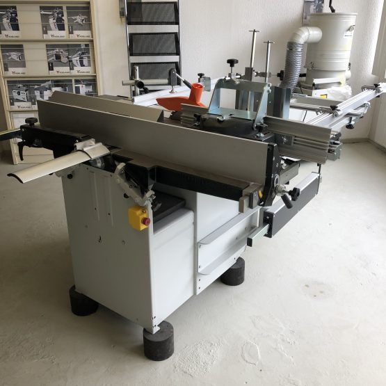 De hard-geanodiseerde, indrukwekkende schaafgeleiding, met speciale zwenkkop, blijft bij het schuinstellen op de tafel zonder opening tussen profiel en tafelvlak.