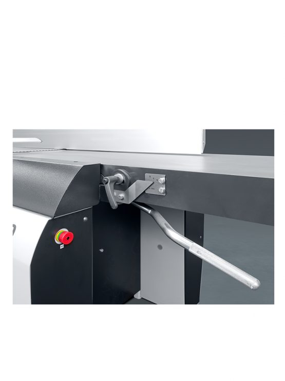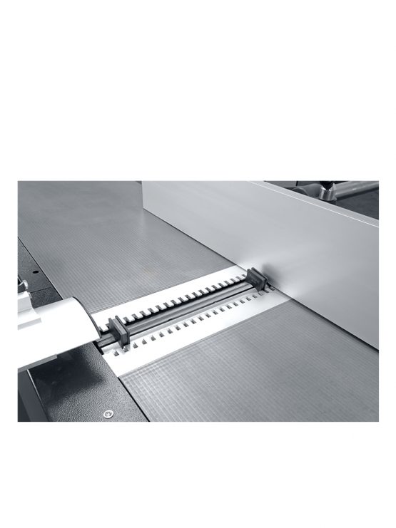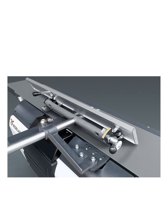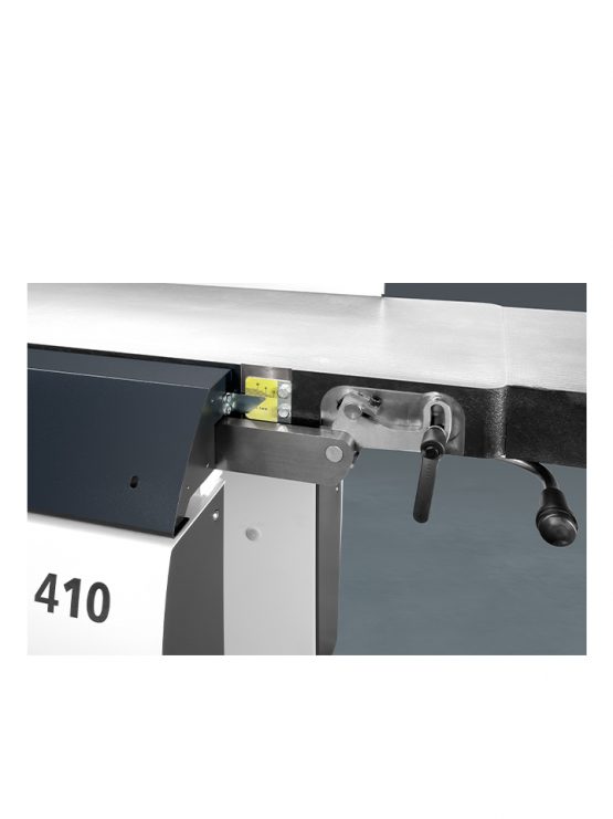 De parallelogram-verstelling van beide schaaftafels waarborgt een perfecte geometrie en een constant minimale opening tussen tafel en schaafas