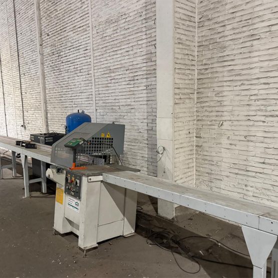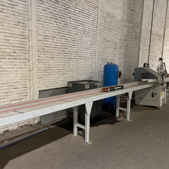 Zaagstraat is compleet met Tigerstop lengte 6,8 meter, een in- en uitvoertafel.