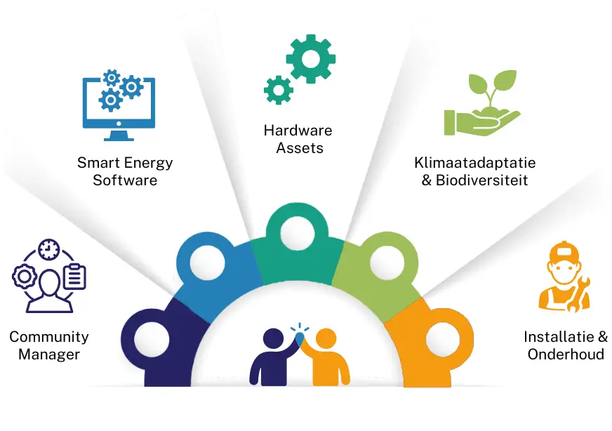 Er worden allerlei verschillende partijen (installateurs, hard-software etc.) betrokken bij collectieve oplossingen zoals ‘Smart Energy Hubs’. Door verschillende oorzaken is er sprake van vooral ‘Oog op eigen bal’. Sommige partijen hanteren bijvoorbeeld eigen digitale communicatieprotocollen (MODBUS) waardoor Hardware-Assets en/of Stroomsystemen (het: Energy Management System) niet of minder goed zijn te integreren. Hierdoor wordt het ‘centraal’ monitoren en aansturen niet integraal & optimaal. Terwijl dit juist bij collectieve Netcongestie-oplossingen van groot belang is, en is direct van invloed op het aandeel ‘Smart’ als succesfactor van de ‘Smart Energy Hub’.